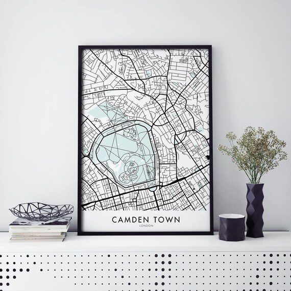 Camden Town, London, England UK Art, City Map Print Wall Art A4 A3