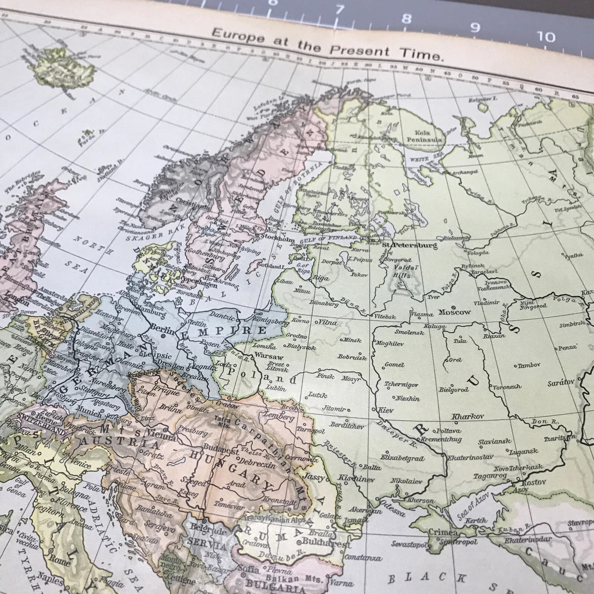 Historical Europe 1910’s Antique Color Map Folded Frameable Wall