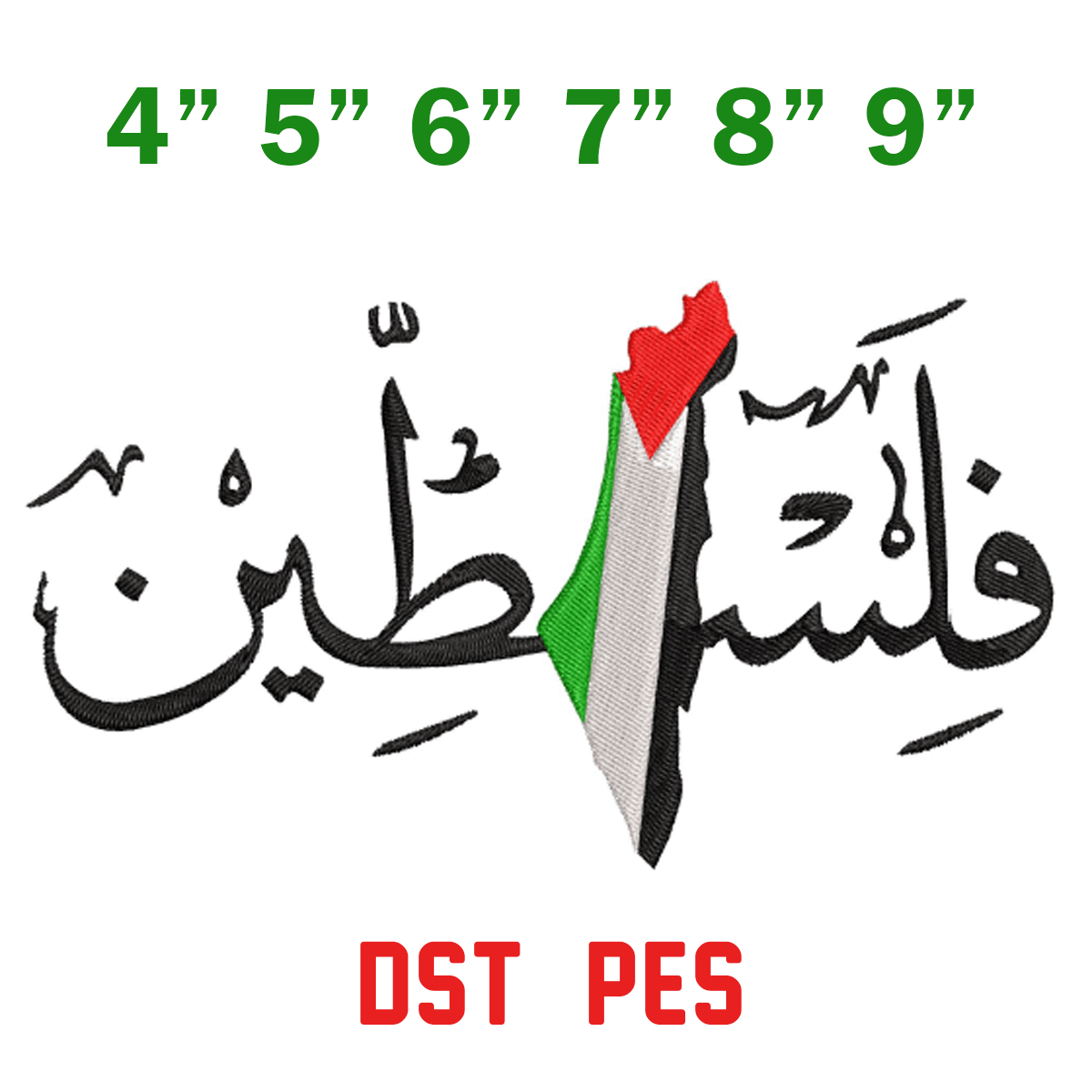 Palestine Map Arabic Calligraphy Embroidery Design 4” 5” 6” 7” 8” 9”