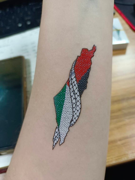 Palestine Map Tattoo TAPPIN’ TATTS I TATTOO SHOP | Gradient Palestinian map for : These may be numbered. This includes works made-to-order, or prints on demand. “Real Map” This map of Adige Batur shows the real borders of Palestine. The artist designed this flowery map as a . As the war in Gaza continues, people across social media are mobilizing in a new form of peaceful protest: the celebration of Palestinian art and culture. Through short films, painted art works .