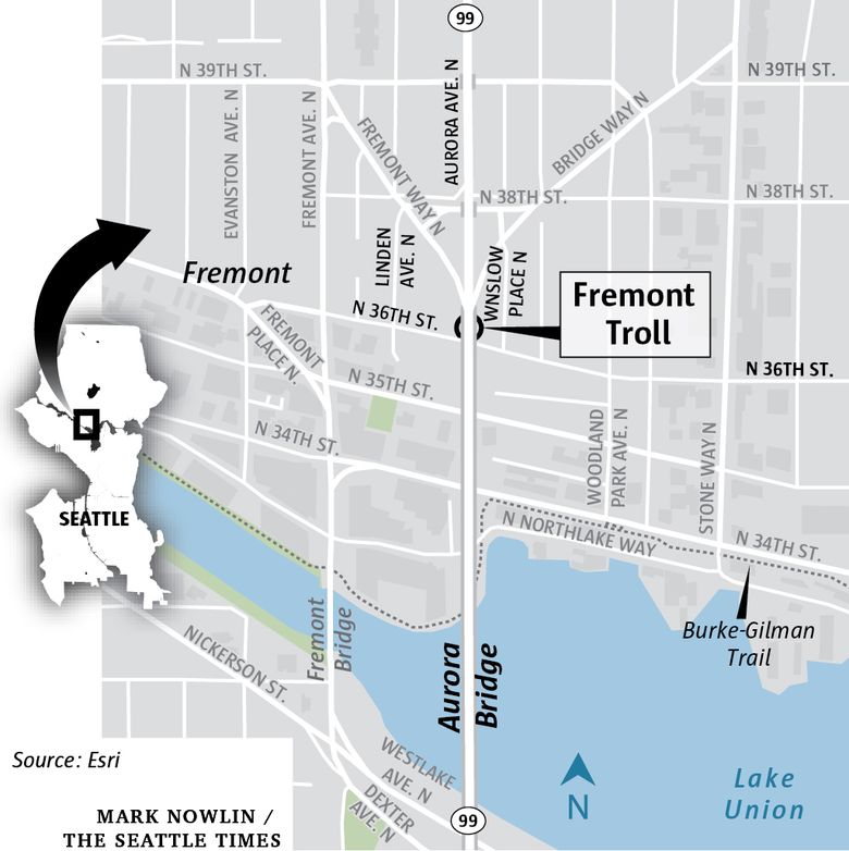 Seattle Trolls Map – The project became a viral success online, connecting people with nature through art and accounting for new tourism and putting Dambo’s name on the artistic map His troll unveiled at the National . Seattle is located on peninsula surrounded by This neighborhood offers visitors some quirky art to admire; including the Troll under the Aurora Bridge and a massive bronze sculpture of former .