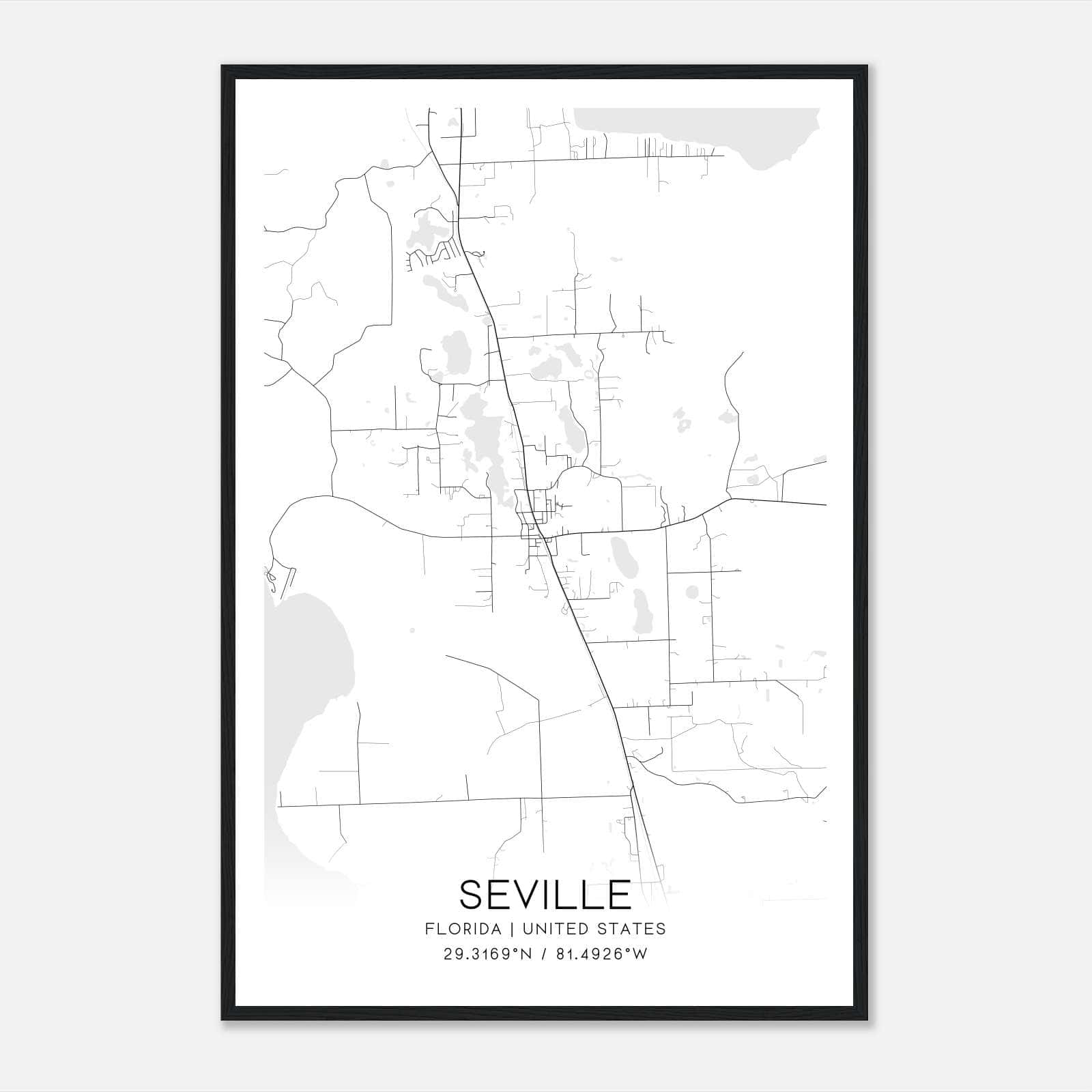 Seville Florida Map Poster, Modern Home Decor Wall Art Print