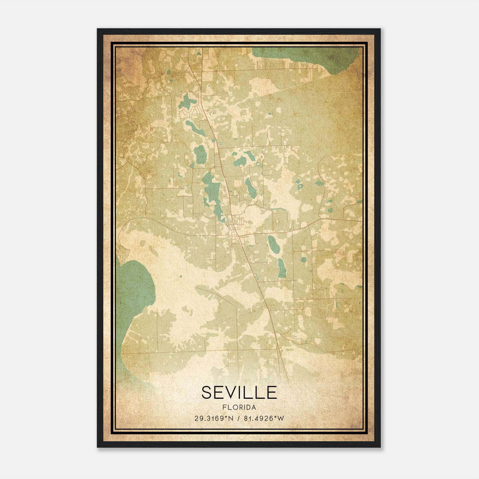 Vintage Seville Florida Map Poster, Seville FL City Road Wall Art