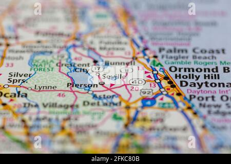 Seville Florida USA Shown on a geography map or road map Stock