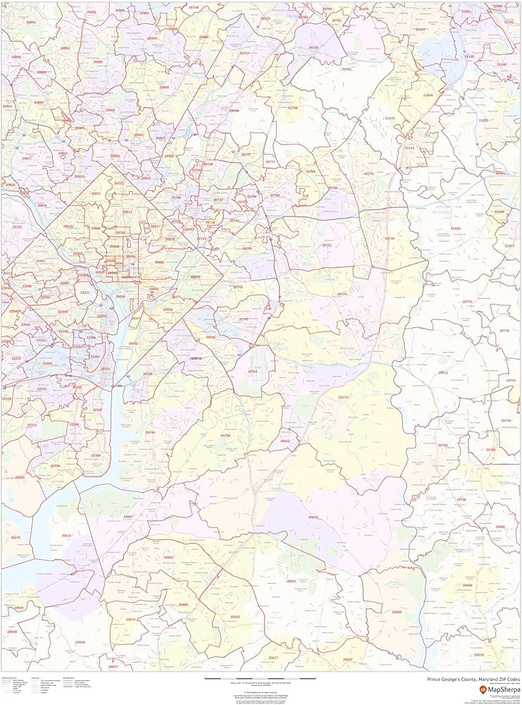 Amazon.: Prince George’s County, Maryland ZIP Codes 36″ x 48
